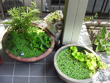 2003/8/1![]() 屋外のビオトーブ風の水槽(鉢かな?)です。メダカと稚魚が100匹ほど入っているそうです。 浮き草なども綺麗に育っていて、何とも涼しげで良いですね。 提供:☆ヤシガニ☆さん |