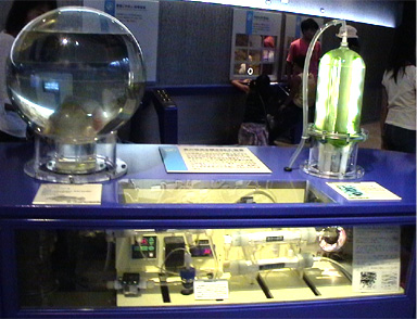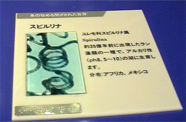 2003/8/18![]() ![]() ![]() 茨城自然博物館の「宇宙」コーナーに展示してある、水槽だそうです。 「魚の住める閉ざされた世界」とのこと。左側の球体に魚が2匹。 右側に餌となる「スピルリナ」を発生させる装置。下が濾過装置。 何ともすごい物があるんですね。これで宇宙にも愛魚をつれていけるかも(^^) 提供:haruruさん |