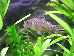 2003/5/28![]() 水草の上にちょこんと乗っかっているコリドラス・レティクラートゥスです。何とも愛らしいです。 それにしても、よくぞこの瞬間を撮ってくださいました。 提供:ジェイさん |