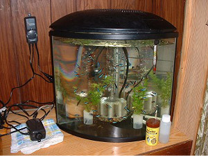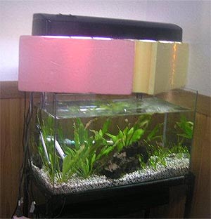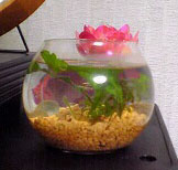 2004/1/9![]() ![]() 水槽用のライトとして裸電球を使ってみたところです。 おもしろい発想ですね。水槽も何だかセピアな感じになって雰囲気が出ています。 こういう水槽もちょっと良いのではないでしょうか? 提供:kingyoさん |