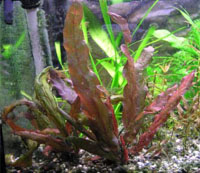 2004/3/10![]() ![]() クリプトコリネ・シュルジィ(上)とレッドシャープリーフハイグロ(下)です。 どちらも赤系の水草ですが、こういうのがアクセントに入っていると、 水景が引き締まります。 提供:ジェイさん |