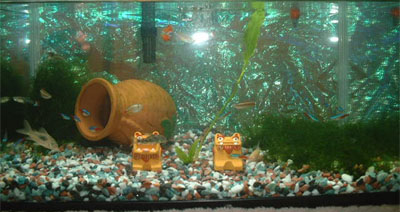 2004/1/21![]() シーサーが鎮座する何とも南国な水槽です。 これで病気を寄せ付けずに、魚たちも元気になるといいですね。 水槽って、いろいろな楽しみ方があって良いですよね。 提供:shoさん |