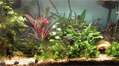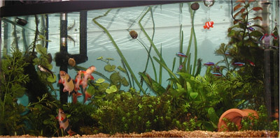 2004/1/9![]() ![]() ネオンテトラがいっぱいの水槽です。一度やってみたいものです(^^) 60匹もいるそうで、かなり壮観ですね。 曲面ガラスの水槽というのもインテリアとしてとてもおしゃれですね。 提供:キヨさん |