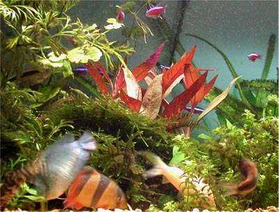 2004/3/10![]() 真っ赤な水草が印象的な水槽です。 まだ名前がわからないそうですが、きれいですね。 やっぱり、色とりどりな水槽は良いです(^^) 提供:梓尤稀さん |