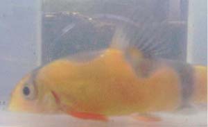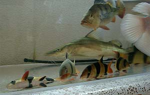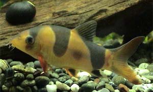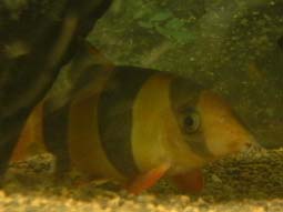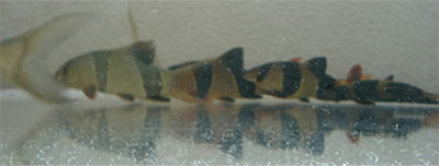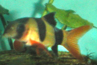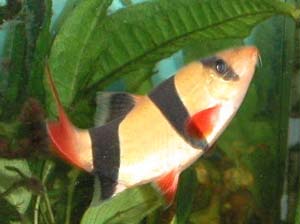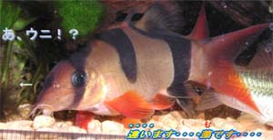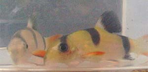 2003/10/21![]() 体長20センチのクラウンローチです。こういう大型のローチって私はなかなか見る機会がないので、 羨ましいです。大きいのに縞も体色も綺麗ですし、体型も崩れてなくて美しいですね。 提供:しゅうさん |