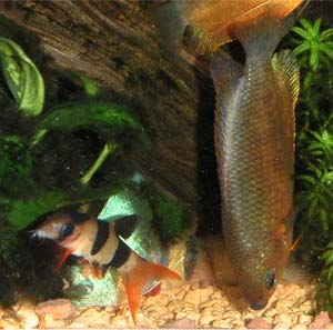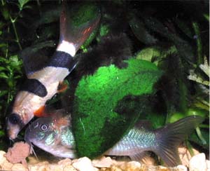 2003/10/21![]() ![]() コリドラスと一緒にいるローチです。平和に混泳していますね。 でも、餌の時にはそんなことなど忘れてしまうのでしょうね(笑) 提供:梓尤稀さん |