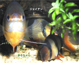 2003/12/14![]() ![]() クラウンローチの水槽の様子です。 最近、新しいデジカメを買われたそうで、そのご報告の時に見せていただいた写真です。 凄く綺麗に写っています。それにしても、ボーしゃん、大きくなったような…。 これからの写真にも期待しています。 提供:haruruさん |