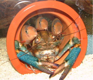 2004/4/16![]() ザリガニとの混泳ってクラウンローチが襲われるのでは? なんて思うのですが、どちらかというと、好き放題なクラウンローチに 圧倒されているように見えるザリガニ君がなんだかけなげです(^^;。 提供:なっつさん |