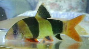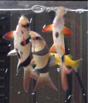 2004/5/08![]() すごく綺麗なプロポーションのローチです。 購入されたジェイさんは、しっかりと縞が腹まで届く台形で、 ヒレが赤い個体が好みとのこと。こだわりが伺えます。 提供:ジェイさん |