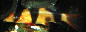 2003/12/31![]() ![]() ぼーるさんの柄違いのローチです。 背鰭の付け根を巻くようにして黒い帯が出ています。 こうなると縞という感じではないですね。 個性的でおもしろい個体ですね。 提供:ぼーるさん |