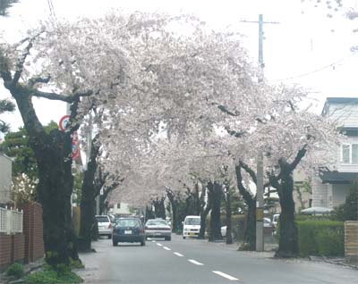 ということでこの左の写真、桜ヶ丘通りといいまして、函館の柏木町(かな?)にある普通の市道です。その両側にサクラの木が立っておりまして、この時期になるとサクラのアーチができるのですね。1枚目の写真を見ていただければわかりますが、かなりの長い通りです。写真をとった日はあいにくの曇り空でしたが、なかなかのものだと思います。もう少し経つと桜吹雪になりまして、それはそれでなかなか見応えがあります。 2枚目の写真のように結構立派な桜もあるんです。あまり広くない通りで、サクラの木は道路にせり出しているのですが、あまり文句を言う人は居ないようですね。 3枚目の写真にありますように、普通の道路なのできちんと信号もありますよ。ちょうど赤だったので撮してみました。この時期はこの通りは車もゆっくり桜を眺めながら進みますし、天気が良ければ歩いている人もかなり居ますので、普通に道路としてここを通るのは避けた方が良さそうです。通り抜けるのにかなり時間がかかります。という私も、ノロノロ走りつつ、たまに路肩に停まりつつ、ハザードをつけまくって後方からくる車に迷惑かけながら撮影したのですが…(^^;。とまあ、こんな感じで宴会するほど時間はないけど、花見の気分くらいは味わいたいなと思いましたら、もう少しだけ咲いていると思いますので、見に行かれてはいかがでしょうか? またも、思いっきりローカルネタですみません。 |